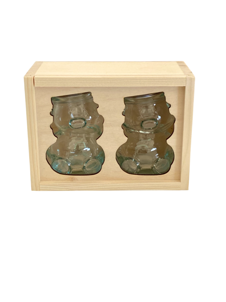 Toto balenie je určené na darčekové alebo prezentačné účely. Pojme 2 kusy sklenených pohárov v tvare medvedíka s objemom 220 g (typ MACKO22).