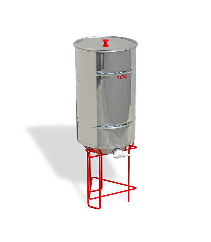 z nehrdzavejúcej ocele, O 378 mm, výška 675 mm, s nerezovým výpustným ventilom na med a plne vyprázdniteľným dnom.Usadzovacie nádoby „ZERO“ z nehrdzavejúcej ocele AISI 304 majú špeciálne tvarované dno s úplným odtokom, ktoré umožňuje nastaviť výpustný ventil na najnižšom bode dna, čím sa zabezpečí úplné vyprázdnenie medu z nádoby. Kovový stojan je nevyhnutný pre stabilitu nádoby.