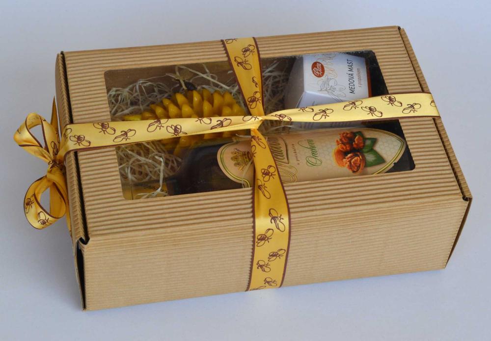 Darčekové balenie L2 obsahuje medovinu, kozmetiku a sviečku zo včelieho vosku. Fotografia je ilustračná.