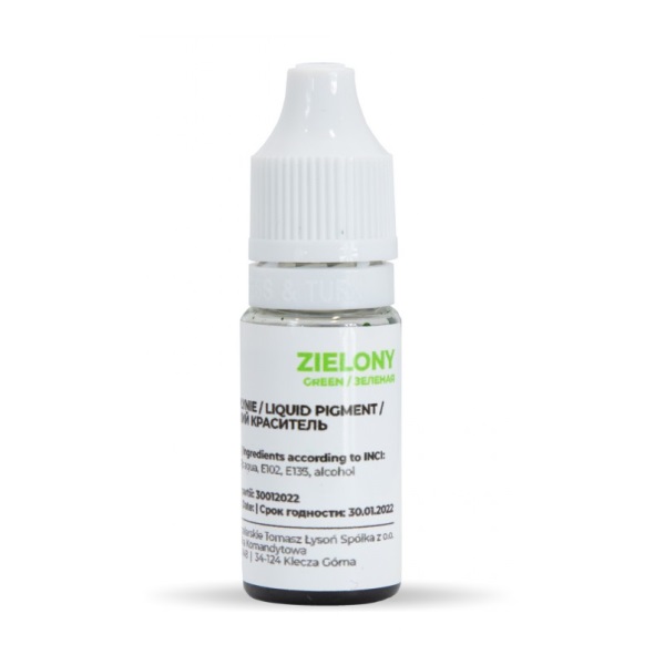 Tekutý zelený mydlový pigment 10ml (16g) určený pre farbenie telovej umývacej kozmetiky. Pigment má vysokú výdatnosť a 1 gram vystačí na niekoľko kilogramov mydla, v závislosti od požadovaného odtieňa.