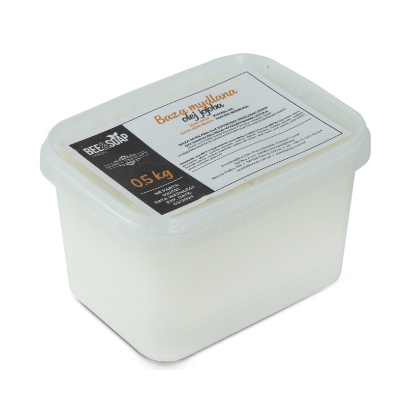 Mydlový základ - jojobový olej v balení 0,5 kg určený pre vytváranie rôznorodých druhov telovej umývacej kozmetiky. Obsahuje vysoký podiel glycerínu - výborne pení. Najlepšie sa znáša s esenciálnymi olejmi. Pre dosiahnutie požadovanej hustoty sa zmiešava s destilovanou vodou, prípadne s výluhom z byliniek.