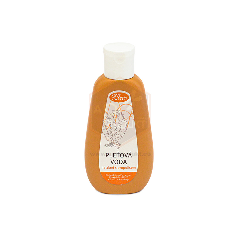 Pleťová voda na akné, 120g bola špeciálne vyvinutá na problematickú pleť. Okrem propolisu boli použité v pleťovej vode extrakty z morských rias (klinicky testované) tj. účinné látky pre aknóznu pleť. Tieto látky obmedzujú tvorenie mazu, pôsobia proti rozvoju mikroorganizmov a pôsobia hojivo. Doporučujeme použivať sučasne s pleťovým krémom na akné (kód: VP1446) – výrazne sa zvyšuje ich účinnosť.