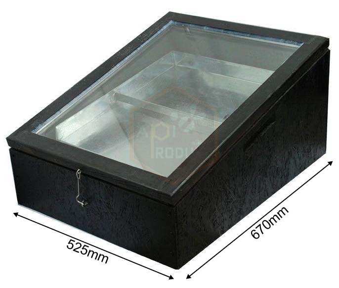 Solárna voskotopka s dreveným korpusom sa používa na získavanie vosku zo včelích plástov s využitím slnečnej energie.