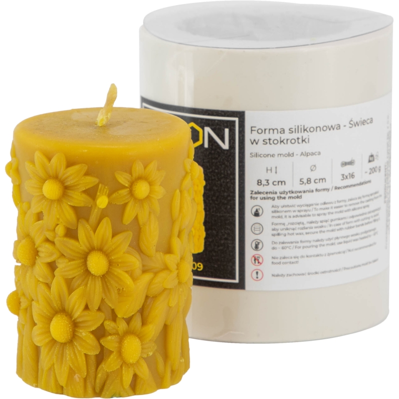 Dekoratívna forma určená na výrobu sviečky so vzorom margarétok. Ideálna na jarné a letné dekorácie interiéru, ako aj ako originálny darček. Sviečka vyrobená v tejto forme pôsobí veľmi efektne a romanticky.