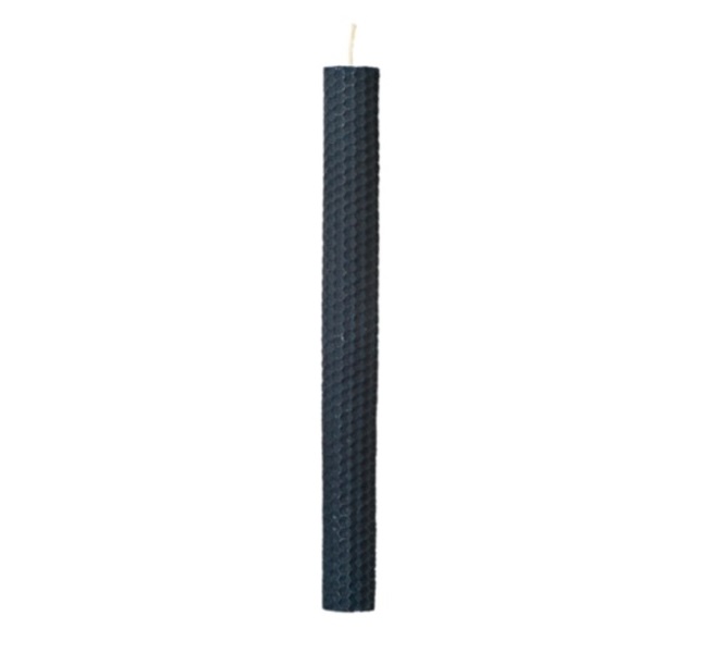Veľká modrá sviečka z vinutej farebnej medzistienky zo včelieho vosku.