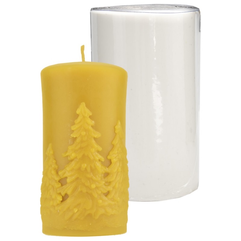 Silikónová forma na výrobu sviečky: Valec so smrekmi vysoký